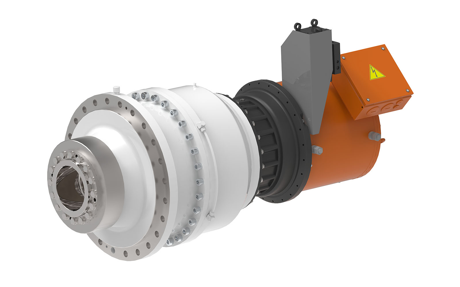 驱动系统由行星齿轮箱、带有液压单元和获得过的滑动过载离合器以及同步电机组成。
